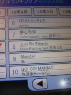 ジョイランキング。一位は残酷な天使のテーゼ。二位から八位まではボカロ。