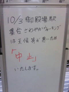 中止だって。駅の掲示板に書いてあった。